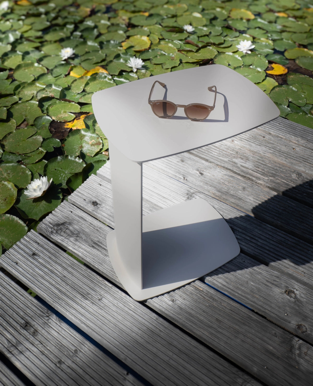 STANDBY – Beistelltisch aus Metall in C-Form, wetterfest für innen und außen