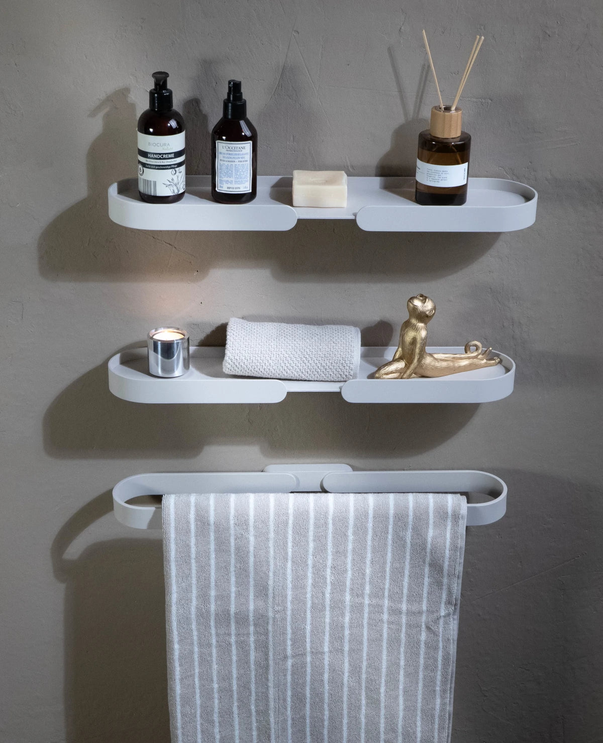 LUMO Handtuchhalter zeigt, dass funktionale Badaccessoires nicht zurückhaltend oder beliebig sein müssen. Mit seiner runden, klaren Formsprache greift er das Design des LUNGO Shelf auf und lässt sich harmonisch mit diesem kombinieren. Ein durchdachtes Zusammenspiel aus Stil und Funktion für moderne Badezimmer.