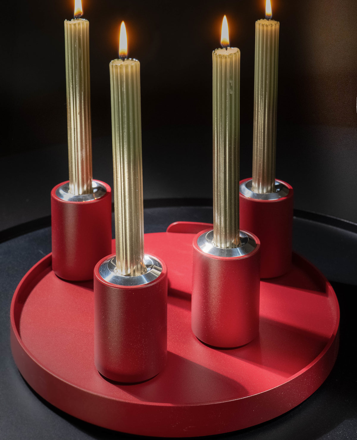 Advents-Set aus Aluminium mit rundem Tablett und Vier 2-in-1 Kerzenhaltern